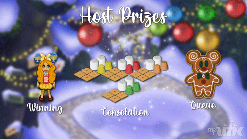 This week, be sure to try your luck at winning our HOST prize, Minnie Ears - Chanukah, Mickey Ears - Christmas, Backpack - Chanukah Dreidel, Backpack - Reindeer (1 chosen randomly). Those who do not win will still receive a Choose Your Own Holiday Bundle (1 of 4 bundle variations) x2 Dots (Green, Red, Orange, or Yellow), x2 Marshmallow Chair, x4 1x1 Cookie Floor. And for those who do not make it into the game, everyone in the queue will be awarded a Gingerbread Cookie - Mickey (Pin).